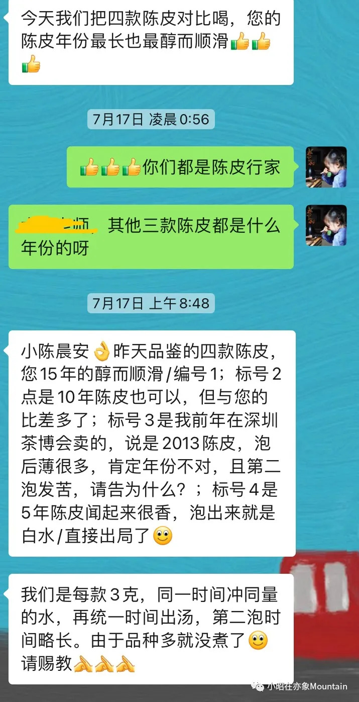 深圳一位老茶友心粉用几款陈皮同时冲泡做对比